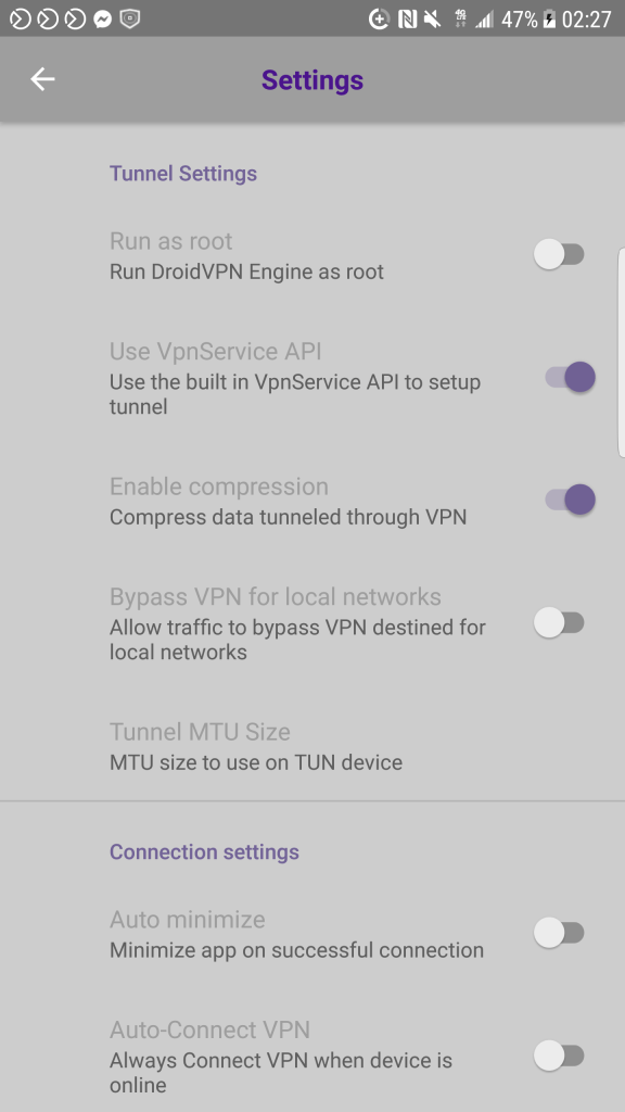 Entrez dans » vpn connection settings » puis cochez les trois premiers , après cochez les deux auto-reconnect.